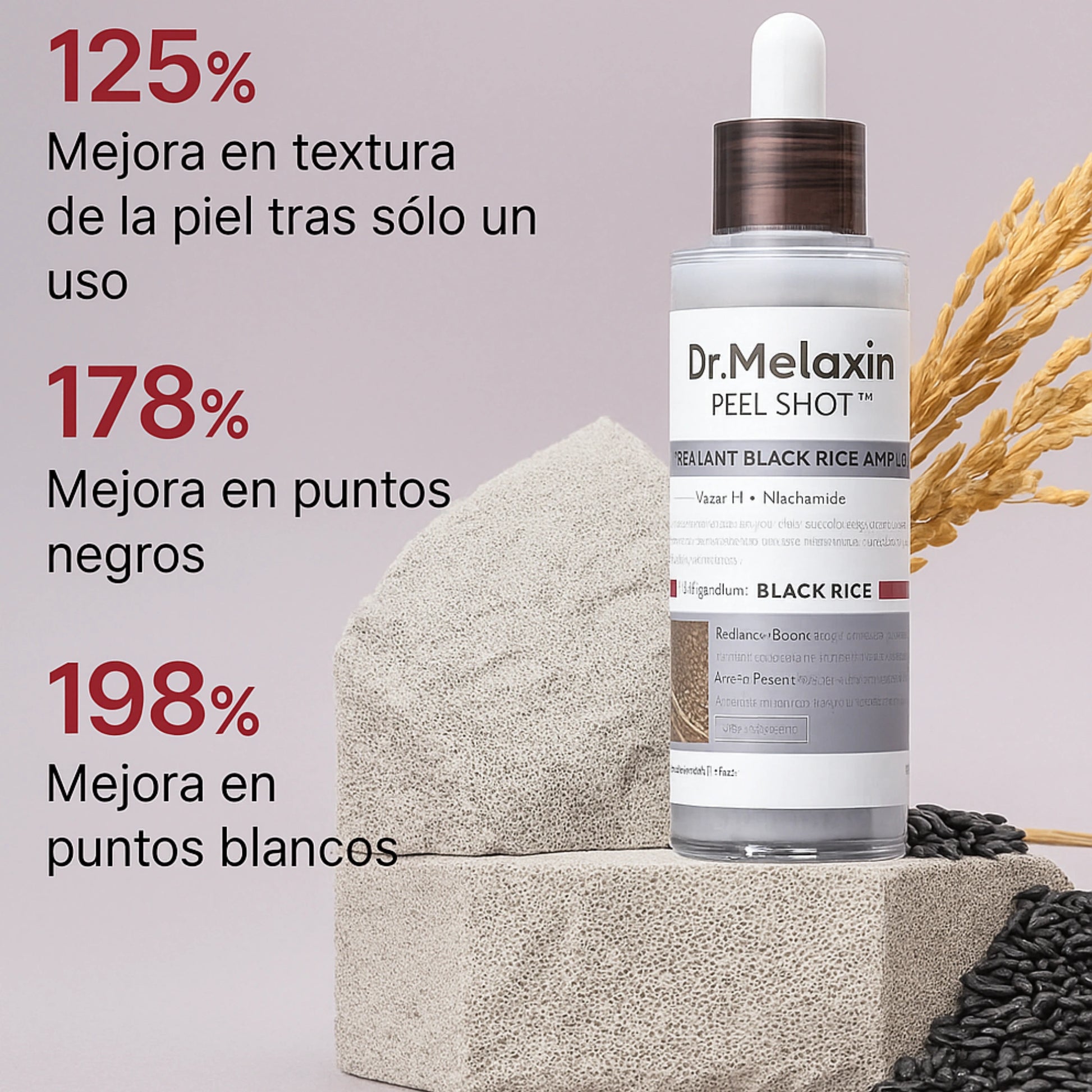 Experimentaron una reducción visible de manchas y signos de fatiga con Dr melaxin Ampolla Rice Black Rice white 30ml